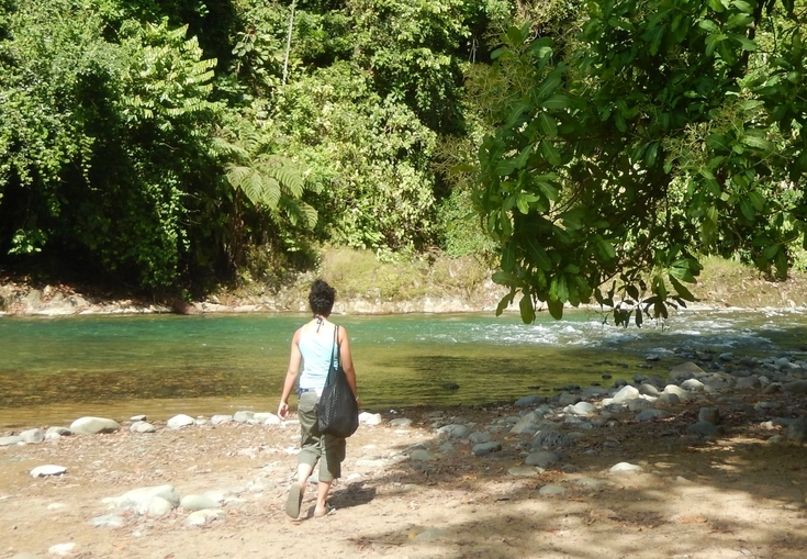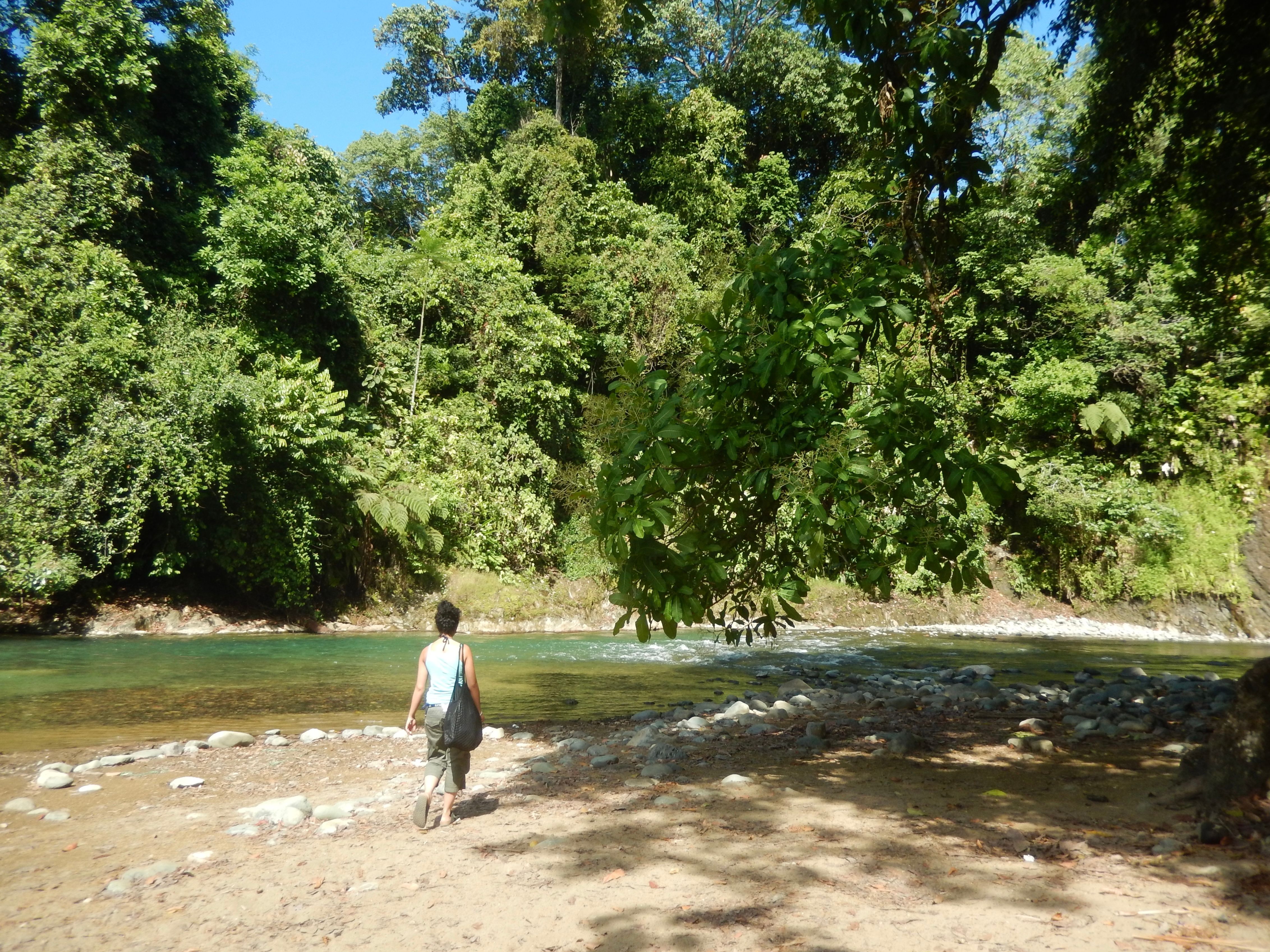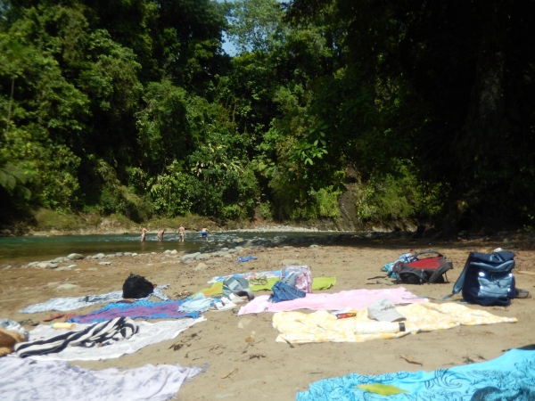 När vi kom fram gick vi direkt ner till flodkanten för att bada. Vattnet här var mycket kallare än havet vi är vana vid i Quepos, så det var väldigt skönt att få svalka sig ordentligt. Man kunde flyta med strömmen i floden, och runt omkring oss var det grönt överallt.