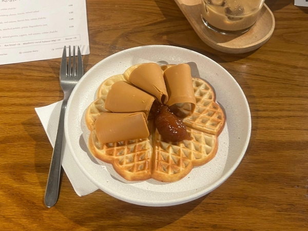 Vi besökte också ett café i Centraldistriktet, som heter Hjem. Det är ett nordiskt café som drivs av en norsk dam. Vi beställde Skagentoast, köttbullar, kanelbullar och norska våfflor med brunost.