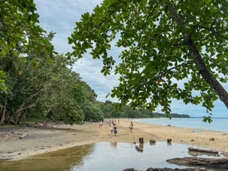 Efter besöket var det dags att kolla in de karibiska stränderna. Vi behövde inte gå längre än över vägen och ut till stranden innan vi hittade korallrev. Där kunde vi snorkla med exotiska fiskar som rockor, papegojfiskar och blåsfiskar bara några meter ut i vattnet. Det fanns också gott om tillfällen att utforska undervattenslivet när vi tog båten ut till nationalparken Cahuita för att snorkla. Där fick vi en guidad tur, först i vattnet runt korallreven, sedan i djungeln. Höjdpunkten var när guiden kunde peka ut en nurse shark precis under där vi simmade. Detta skapade stor glädje hos alla, och vi fick gott om tid att studera hajen som låg fredligt i korallrevet.