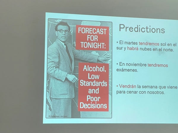 Av de andra proven vi hade, var det ett muntligt prov, som var den näst sista skolveckan. På min spansknivå, spanska 1, hade vi då en presentation där vi skulle ge instruktioner eller ett recept.