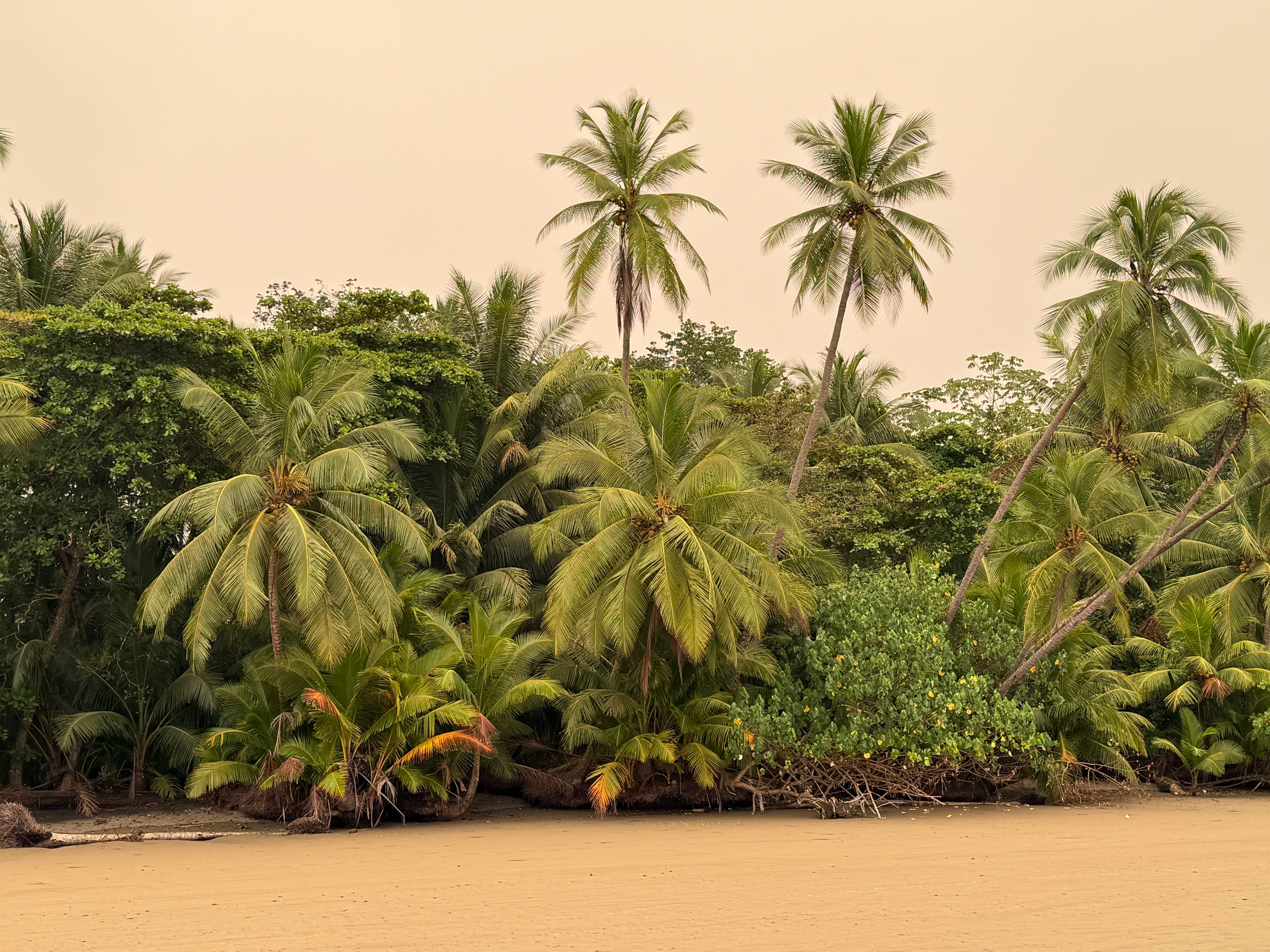 Synet av vågor som rullade upp längs den beige stranden framför höga palmer fyllda med kokosnötter kändes overkligt, som en scen tagen ur en film. Efterhand övergick himlen från intensivt blå till grå, vilket fick det gröna att "pop" ytterligare.